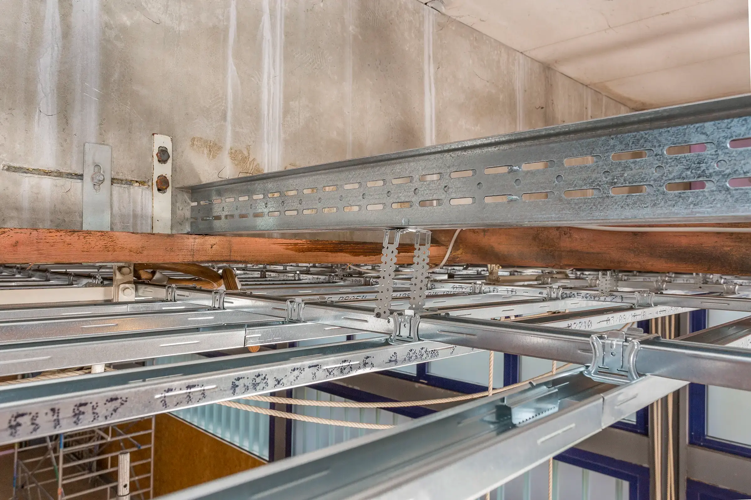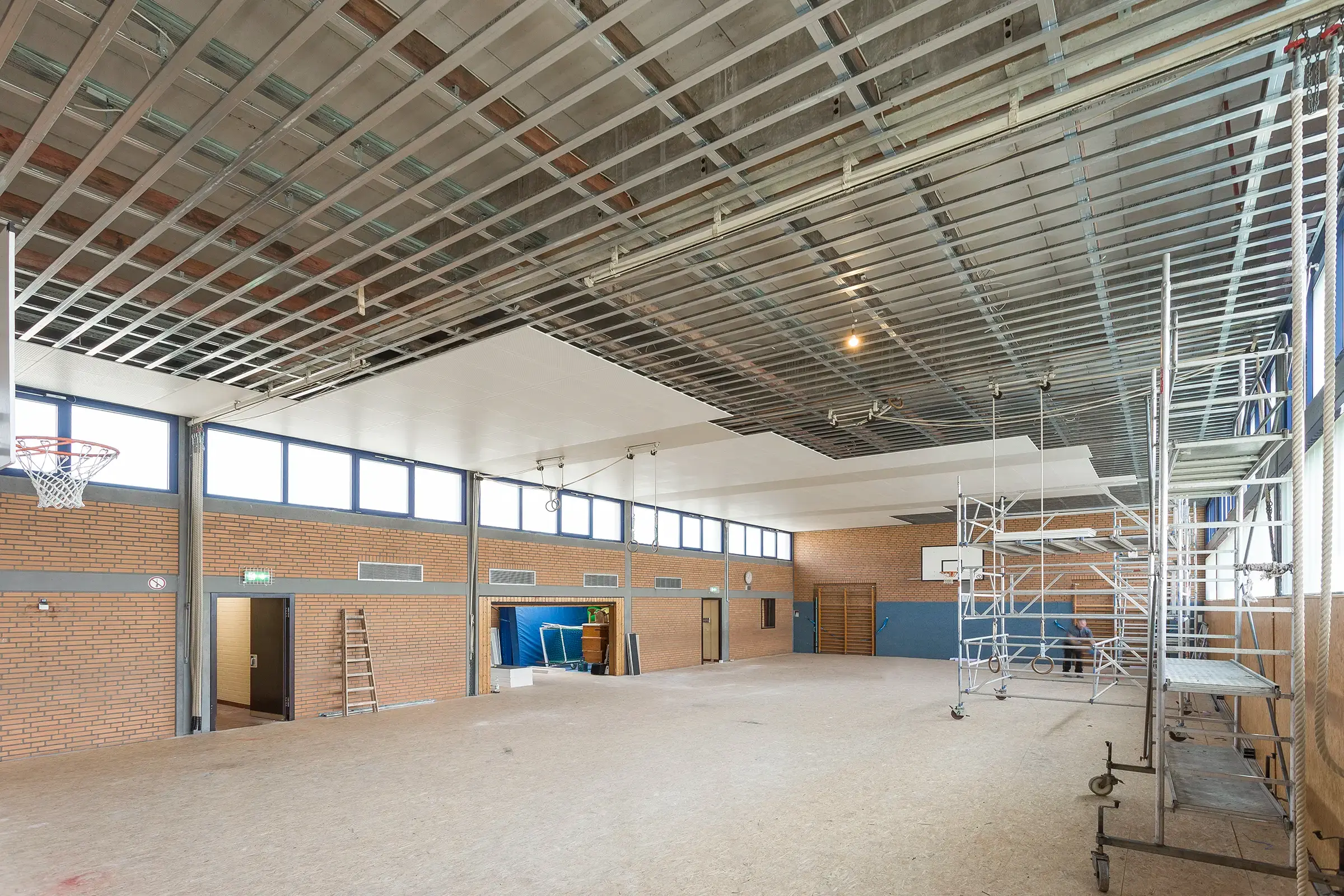 Fotodokumentation über die Sanierung einer Decke in einer Sporthalle für die Fa. Knauf Gips KG.