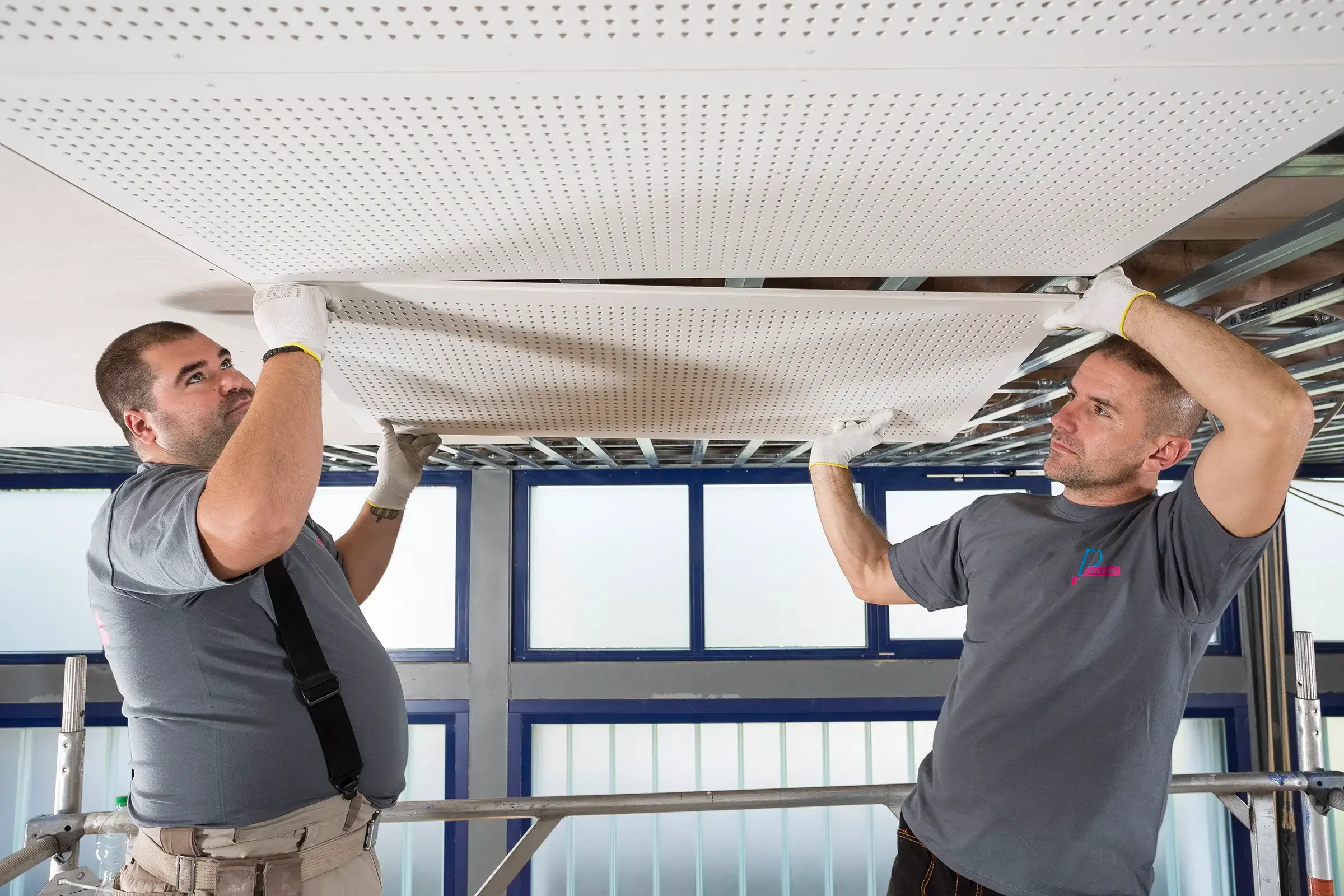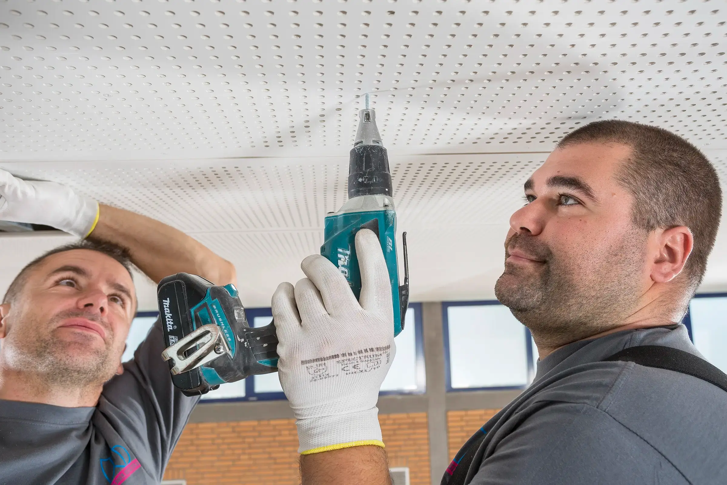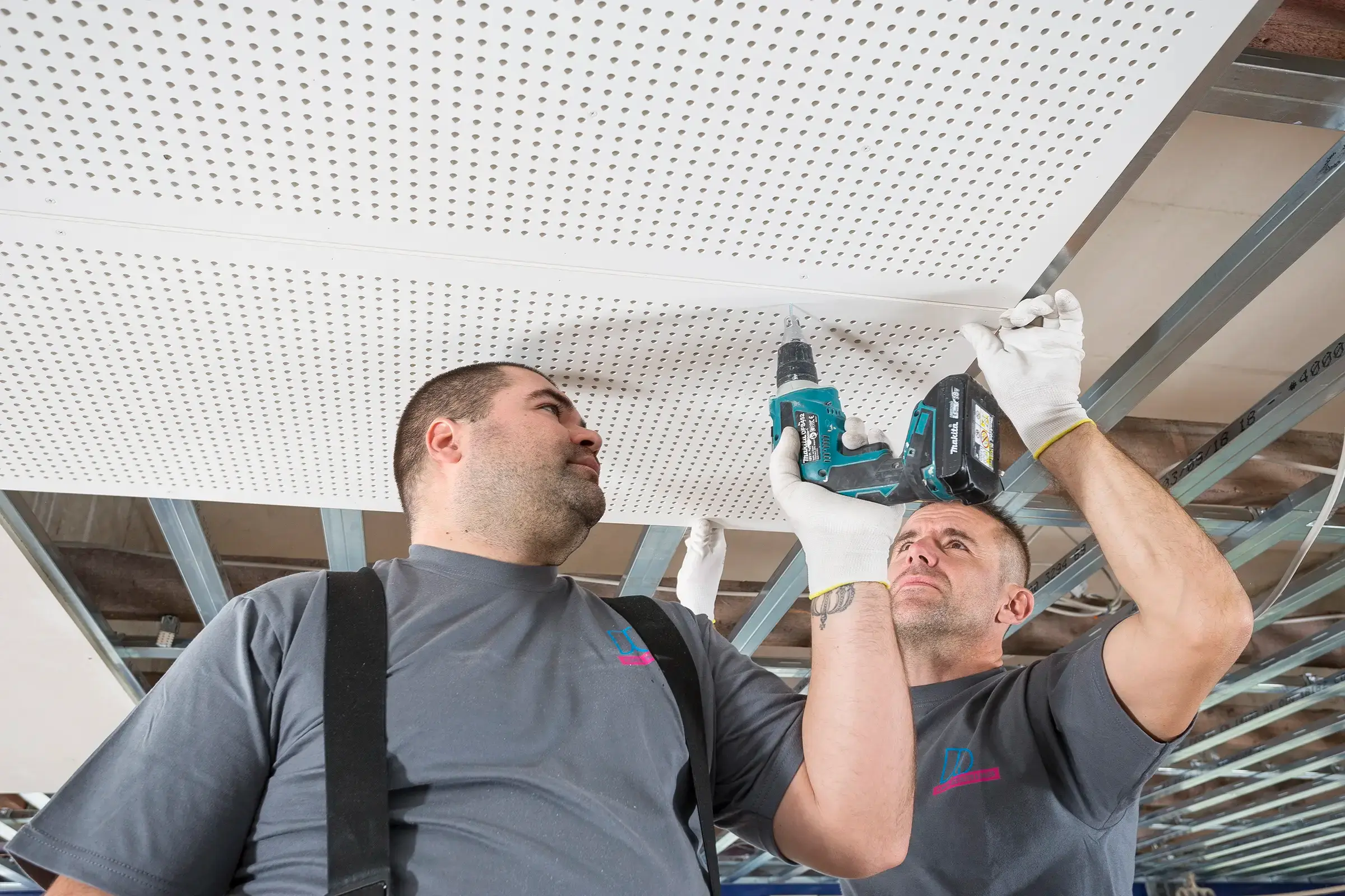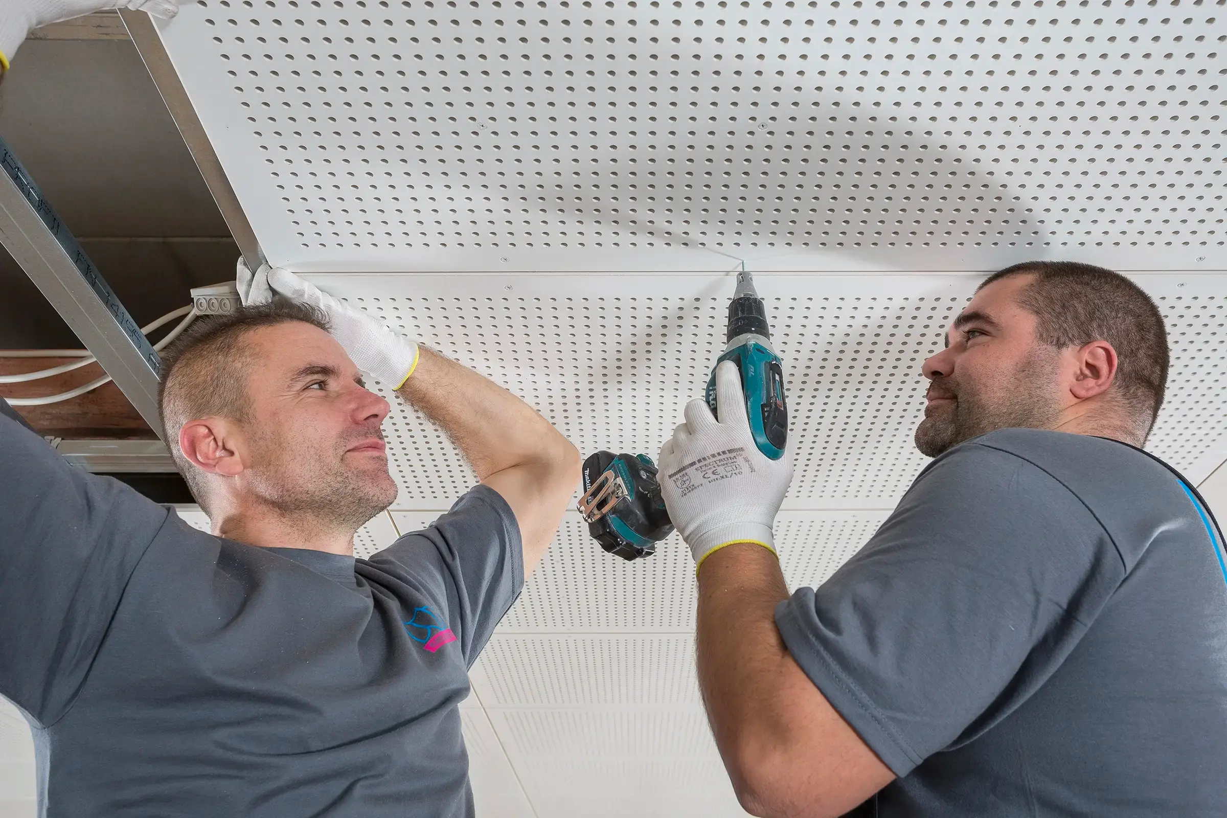 In Trockenbauweise wurde eine neue Schallschutzdecke montiert. Später erstellten wir die Abschlussfotos der fertigen Halle.